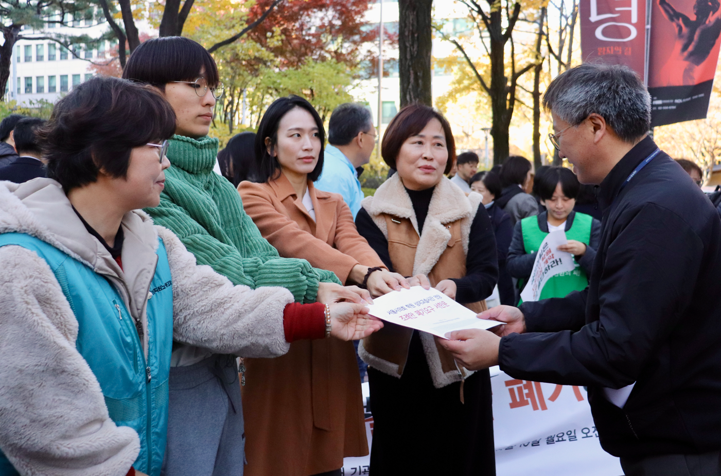 연대 기관 및 단체: SKB비정규직노원도봉지부,강동폴짝,강동연대회의,강서양천청소년노동인권활동가모임'다움',공공성강화를위한금천주민연대,공공연대한전인재개발원분회,공공운수노동조합서울지역본부,공공운수노조서울여대분회,공무원노조성북,관악공동행동,관악교육공동체모두,관악사회복지,관악여성회,관악주민연대,교육나눔협동조합,교육의봄,구로교육연대,금천구주민정치연합,금천구민과함께하는평화의소녀상,금천문화역사포럼,기후위기대응서울모임,나를돌봄서로돌봄,봄봄,난곡사랑의집,난곡주민도서관새숲,노동당성북지역위원회,노동인권센터꼼지락,노동중심사회대전환실천모임,노원나눔의집,노원도봉교육회망네트워크,노원여성회,노원일행,노원평화너머,대노련북서부지역지부,대학무상화평준화서울퇴직교사모임,대학무상화평준화서울운동본부,독립유공자유족회금천구지회,돌봄노조구립하계실버센터분회,동부교육시민모임,민달팽이유니온,민주노련북부지역지부,민주노총서울본부북부지역지부,민주노총서울본부,보건의료노조상계백병원지부,보건의료노조원자력의학원지부,보건의료노조을지병원지부,봉천동나눔의집,빈곤사회연대,사교육걱정없는세상,사회진보연대,생생지락공동체사회적협동조합,서울교육희망네트워크,서울교통공사노조창동차량지부,서울노동광장,서울녹색당,서울민중행동,서울장애인부모연대,서울장애인차별철폐연대,서울지역새로운노동자정치운동체추진모임,서울진보연대,서울참교육동지회,서울청소년노동인권네트워크,서울평등의길,서울혁신교육네트워크,서울혁신교육학부모네트워크,서울혁신학교졸업생연대‘까지’,성북기후행동,성북나눔의집,시민모임즐거운교육상상,어린이책시민연대,용산시민연대,우리동네노동권찾기,우리랑가협동조합,은평학부모연합회,이랜드노동조합,인디학교,일터와삶터의예술공동체마루,장애인배움터너른마당,전교조사립북부지회,전교조중등북부지회,전교조사립관동지회,전국교육공무직본부서울지부,전국교직원노동조합서울지부,전국민주일반노동조합서울본부학교급식지부,전국여성노동조합서울지부,전국학교비정규직북부지회,전국학교비정규직노동조합서울지부,전환서울지부,정의당금천구위원회,정의당노원구위원회,정의당서울시당,정의당성북구위원회,좋은교사운동,주거권네트워크,중랑평화의소녀상준비위원회,중랑행복교육,진보교육연구소,진보당노원구위원회,진보당서울시당,징검다리교육공동체,청소년인권행동아수나로,참교육을위한전국학부모회서울지부,참교육학부모회남부지회,참소중한,청아대가자,택배노조노원지회,토닥토닥바른교육을위한부모모임,평등교육실현을위한서울학부모회,푸른공동체살터,한국비정규노동센터,한국중소상인자영업자총연합회,한울림장애인자립생활센터,함께노동(준),함께노원,함께서울,햇볕은쨍쨍사회적협동조합,홈리스행동,홈플러스일반노동조합시흥지부,희망씨