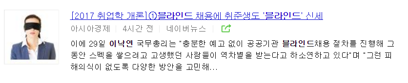 ▲ 실제로 일부 언론은 “블라인드 채용 역차별 하소연 있어” 이렇게 헤드라인을 뽑아 블라인드에 채용에 대한 부정적 여론을 불러일으킴.