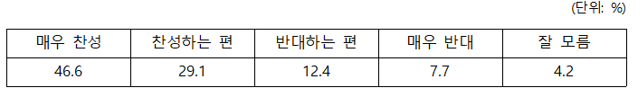 ‘블라인드 채용정책 민간기업 확대’ 찬반(단위: %)